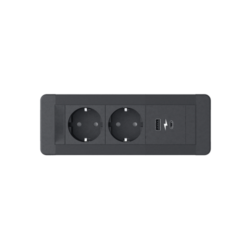 SLIM FRAME 2xSHUKO SOCKET+1xUSB A/C 20W, BLACK